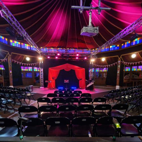 Ce spectacle est modulable et l’installation peut s'adapter à différentes configurations de salles de spectacles, salles des fêtes, gymnases...avec ou sans scène. Le spectacle peut être proposé clés en mains avec la sonorisation et la lumière.