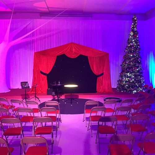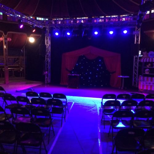 Ce spectacle est modulable et l’installation peut s'adapter à différentes configurations de salles de spectacles, salles des fêtes, gymnases...avec ou sans scène. Le spectacle peut être proposé clés en mains avec la sonorisation et la lumière.